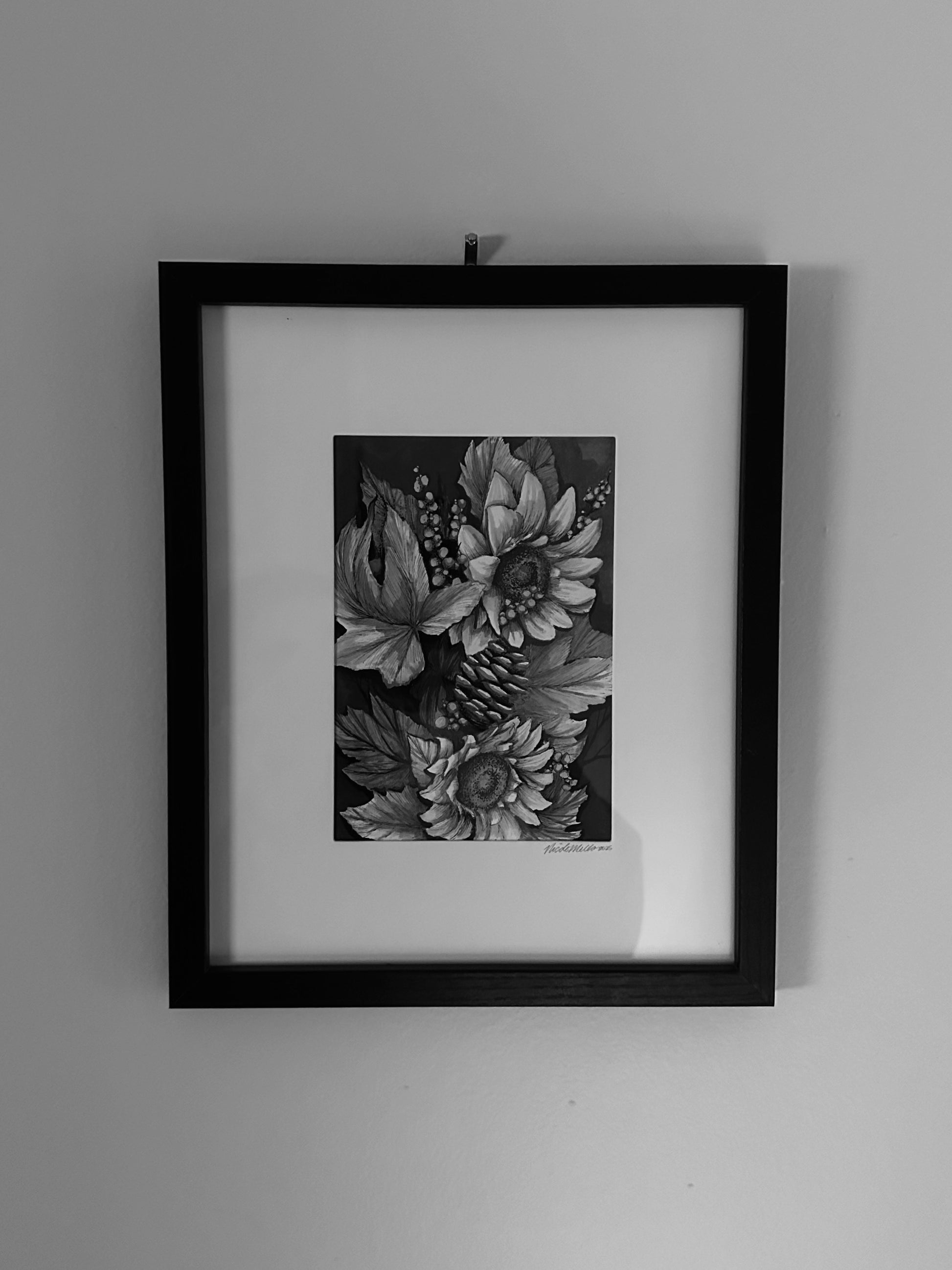 'Autumn Light' 2025 is a one of a kind Nicole Mello Original Pen and Ink artwork. Professionally Framed.